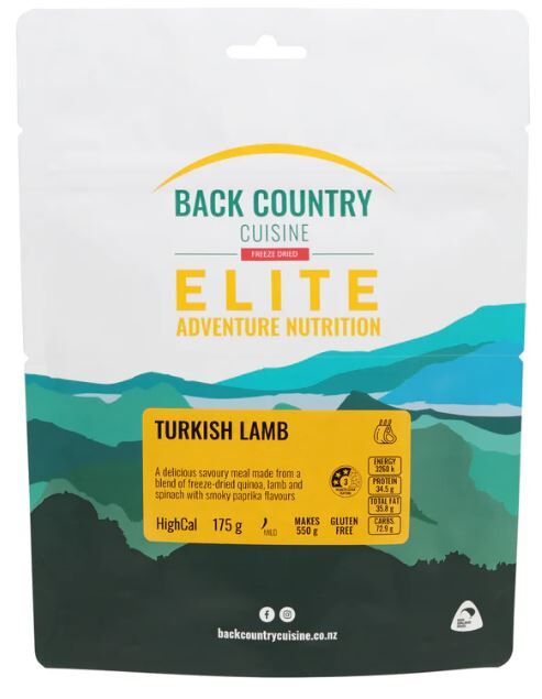 This Elite high calorie meal is light to carry and provides tasty, fast nourishing food for adventure. A delicious savoury meal made from a blend of freeze-dried quinoa, lamb, spinach with smoky paprika flavours. Gluten Free.