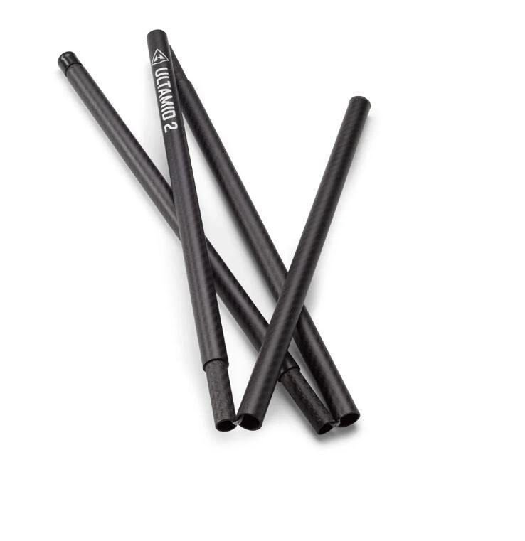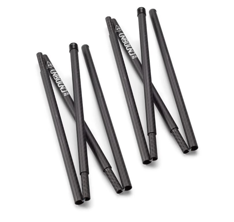 Hyperlite Mountain Gear's carbon fiber tent poles are specifically designed for use with the UltaMid 2 and 4, Unbound 2P, and Mid 1 and Mid 1 Tarp tents, providing a durable and lightweight alternative to traditional trekking poles. Precision-crafted according to our specifications, these poles are essential for a secure and stable shelter setup.