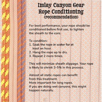 *Conditioning your rope: it is a good idea to condition your rope before first use to bind the sheath to the core. Soak the rope in water for an hour or two, then hang it up to dry. Three cycles of this, then it is ready to go. Many times this happens naturally in the rope’s first canyon, but long ropes tend to escape this fate. Please condition your long ropes before using.*