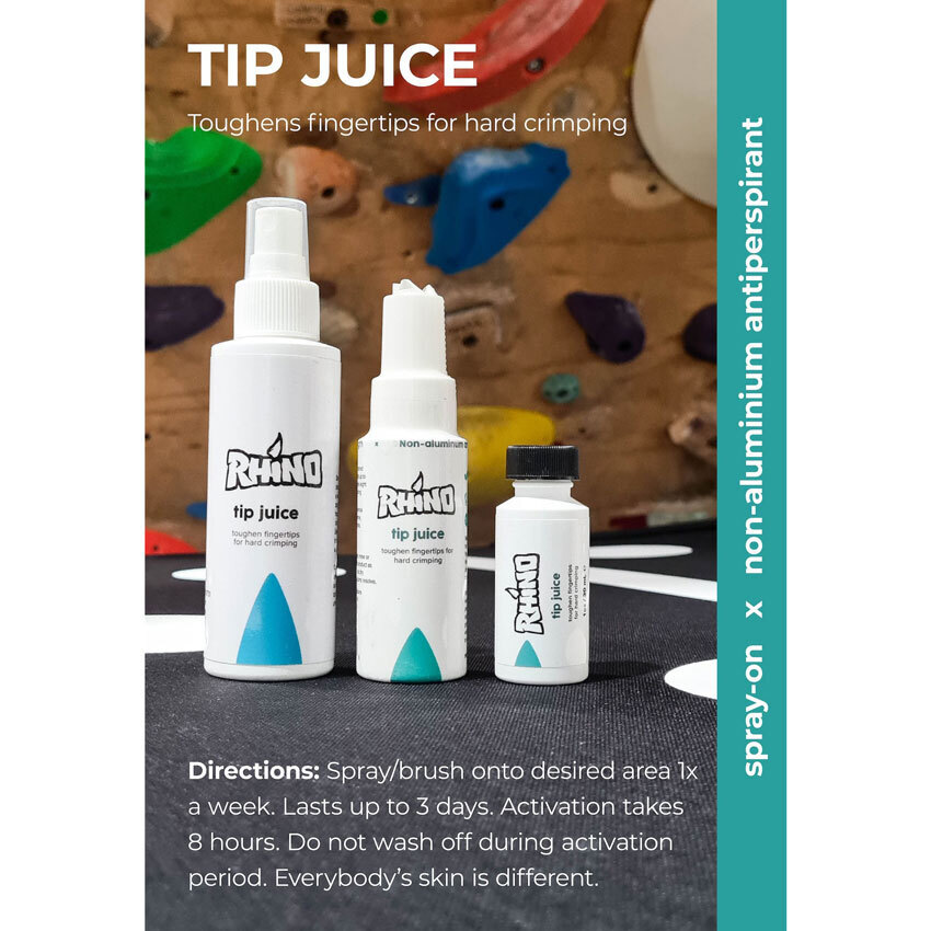 Maximum Strength skin toughener* for very sweaty fingertips. Tip juice is designed for once a week application to decrease sweating and increase crimping durability.​